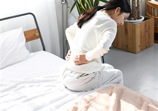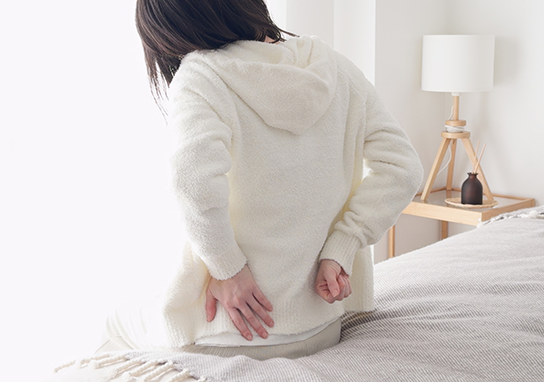 痛みが出た直後は、炎症が悪化するおそれがあるため、動かさず安静にしましょう。横向きで膝を軽く曲げ、背中を少し丸めた姿勢をとると、背中への負担を減らせます。仰向けが楽な場合は、膝の下にクッションを入れて膝を曲げると、背中が支えられて痛みが和らぐことがあります。